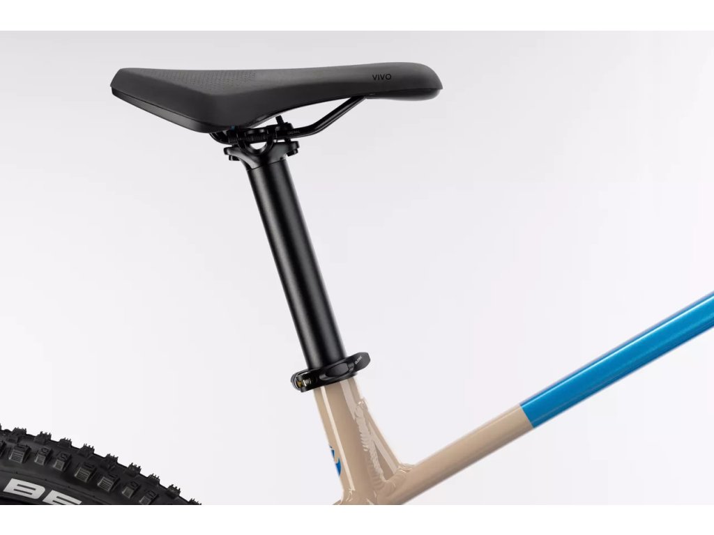 Az SR Suntour levegős teleszkópvilla 120 mm rugóúttal simán elnyeli az úthibákat, a 29”-os kerekekkel együtt pedig igazán egyenletes, kényelmes gurulást biztosít.