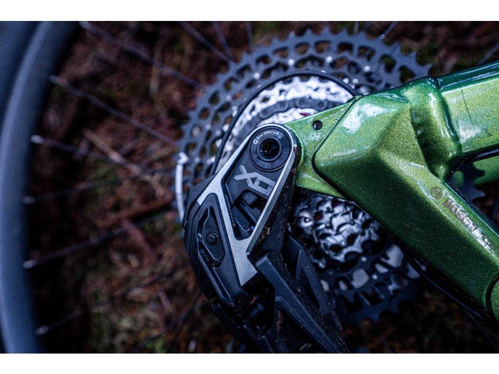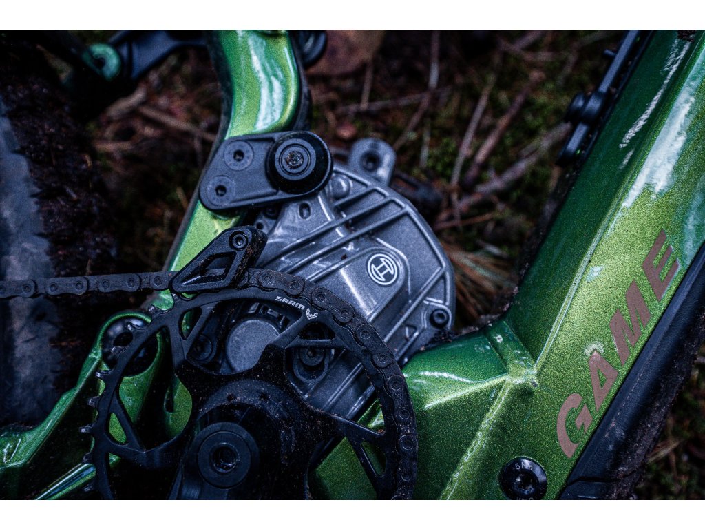 A motor elhelyezésének további előnye, hogy a lejtős alsócső zárt marad, így nem kell nyílást kialakítani az akkumulátornak — ez sokkal dinamikusabb és pontosabb teljesítményt eredményez. Az akkumulátor is jóval alacsonyabban kapott helyet, ami könnyebbé teszi az első részt és játékosabbá a kezelhetőséget. Ennek ellenére az akkumulátor egyszerűen ki- és behelyezhető a motor előtti nyíláson keresztül.