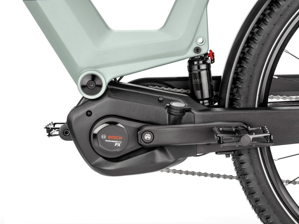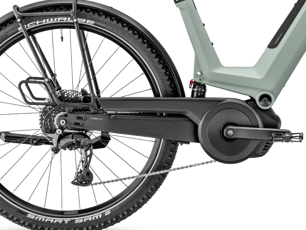 A Bosch széles motorpalettája társul a bringa mély vagy magas vázához. Minden esetben egy zárható első villa és integrált akkumulátor ékesíti az modelleket.