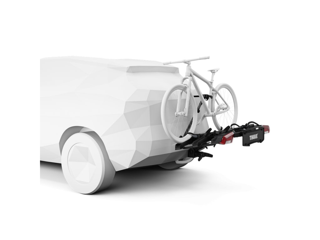 Akár két kerékpár szállítására is alkalmas, és különleges felhajtási funkcióval rendelkezik, amely parkoláskor csökkenti a helyigényt, minimalizálva a sérülés kockázatát. A beépített lámpák biztosítják a láthatóságot és a biztonságot.